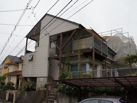 家側面の塗る前です。現状は壁面は白色で統一されていました。